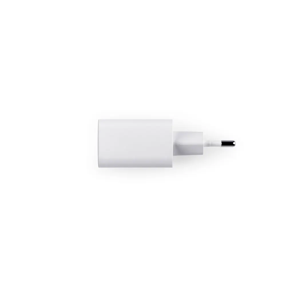 Adaptador de corrente USB-C e USB-A em ABS 100% reciclado. Com USB-C PD20 (20W) e USB-A QC 3.0 (18W) este adaptador permite carregamentos super-rápidos, sendo eficazes em casa, no escritório ou em viagem. Compatível com qualquer dispositivo (o cabo de carregamento é vendido à parte). Fornecido em caixa presente de papel Kraft reciclado. 81 x 40 x 30 mm | Caixa: 45 x 89 x 32 mm