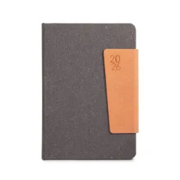 Agenda B5 em pele reciclada (58%) com fecho magnético. Está organizada num plano semanal. Inclui suporte para esferográfica (incluída) e marcador em fita. Fornecida com bolsa de non-woven. 175 x 245 mm | Bolsa: 220 x 270 mm
