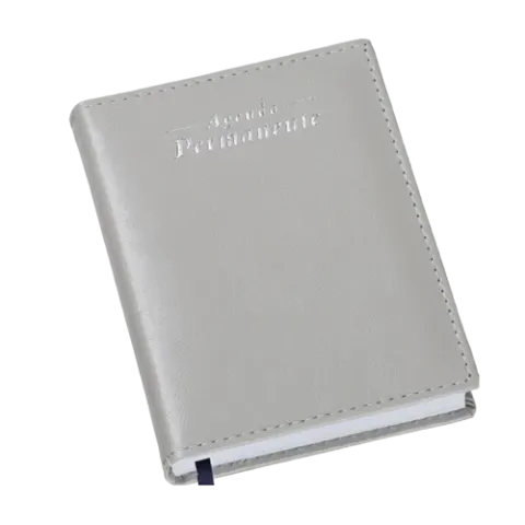 Capa Couro Sintético – Miolo Permanente em Papel Off-set 63g – 1×1 cor – 384 páginas – Dados Pessoais – Contatos – Formato da Agenda 110x155mm.