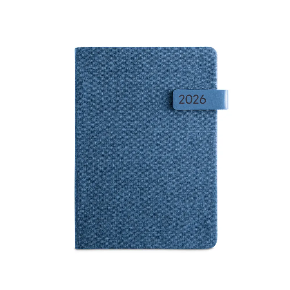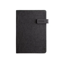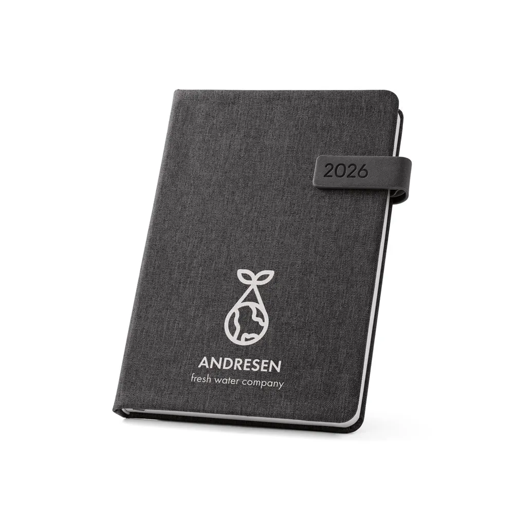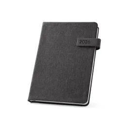 Agenda A5 em rPET. Agenda com presilha em PU com fecho magnético e suporte para esferográfica (não inclusa). Fornecida com bolsa de non-woven. 148 x 210 mm | Bolsa: 205 x 250 mm