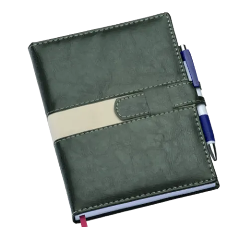 Agenda Executiva Verde c/ Fecho e Suporte p/ Caneta