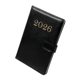 Descrição: Agenda semanal com capa em poliuretano (PU) e fecho magnético. Contém páginas dedicadas a dados pessoais, calendários 2026 a 2028, planejamento diário de 2026 e lista de códigos DDI.