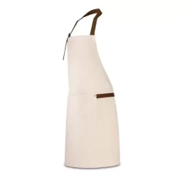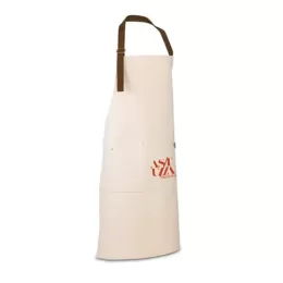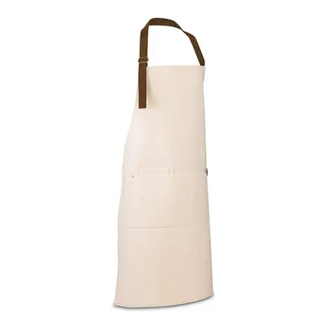 Avental em 100% algodão canvas (320 g/m²) com detalhes em metal. Com 3 bolsos multifuncionais e uma tira lateral (para suporte de um pano de cozinha). Tira do pescoço facilmente ajustável. 680 x 900 mm