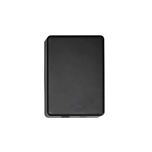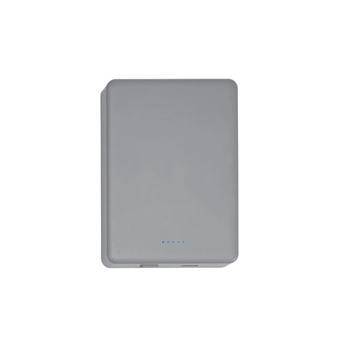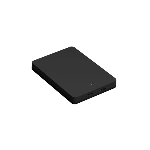 Bateria portátil de carregamento rápido em ABS 100% reciclado com acabamento em mate. A bateria leve em lítio e com design slim, tem uma capacidade de 10.000 mAh e tempo de vida ≥ 300 ciclos. Esta bateria portátil torna-se muito prática para o dia a dia uma vez que permite, através do seu magnetismo, prender atrás dos smartphones ou capas com este sistema. Possui entrada/saída USB-C e potência máxima de 15W para carregamento rápido sem fios. Compatível com smartphones com tecnologia de carregamento sem fios. Incluso cabo USB-C para carregamento rápido. Fornecido em caixa presente de papel kraft. 90 x 65 x 19 mm | Caixa: 76 x 91 x 23 mm