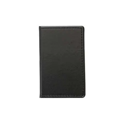 Bloco de anotações em couro sintético com autoadesivos, frente e verso liso.