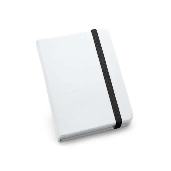 Capa Dura. Couro sintético. Com 80 folhas não pautadas. 90 x 140 mm
