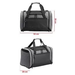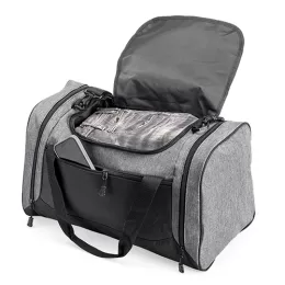 Descrição: Bolsa de 46 litros confeccionada em nylon resistente à água, com quatro compartimentos, incluindo um bolso lateral com parte telada exclusivo para tênis. Possui alça transversal regulável e removível, além de duas alças de mão.