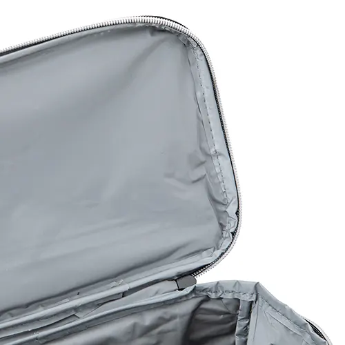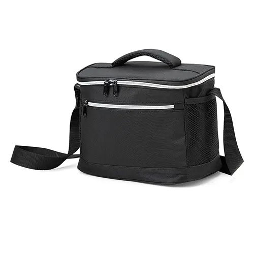 Descrição: Bolsa térmica de nylon 10 litros com dois compartimentos e bolsos laterais em malha. Compartimento principal com revestimento térmico.