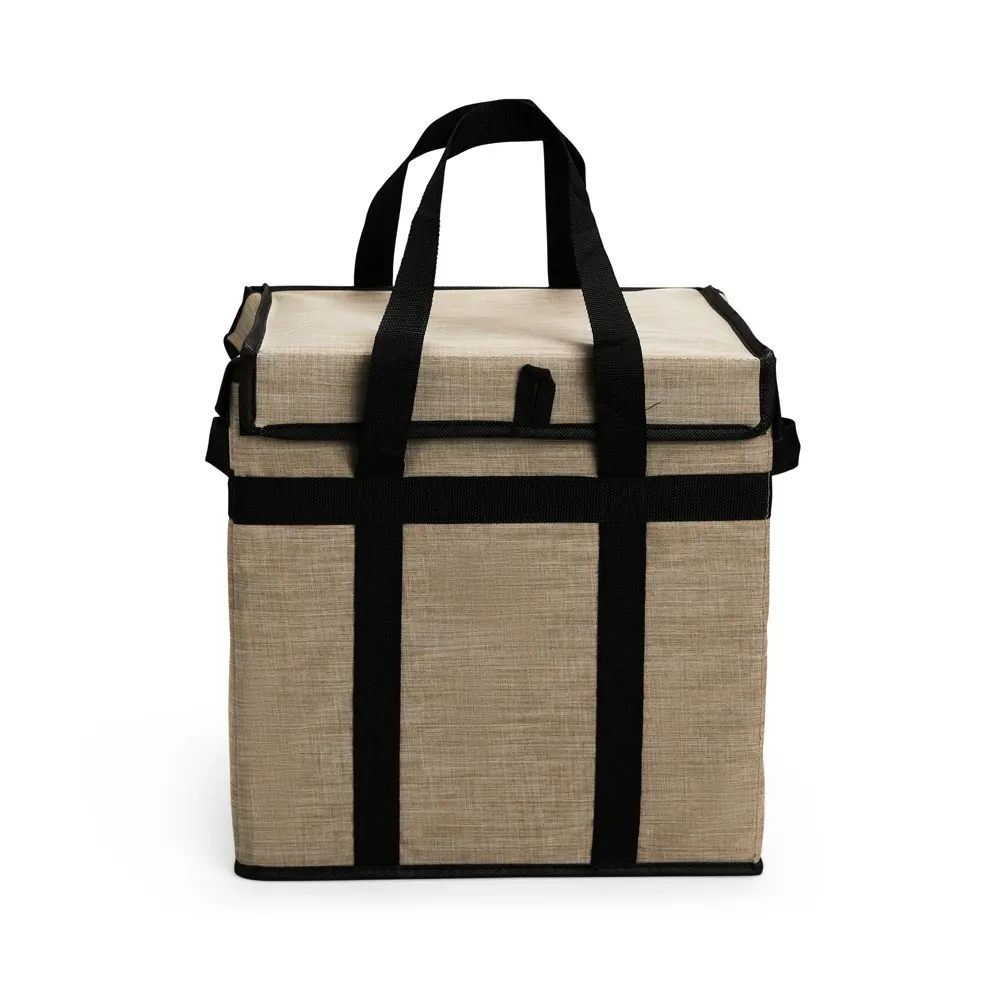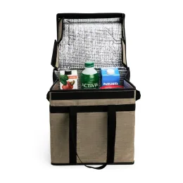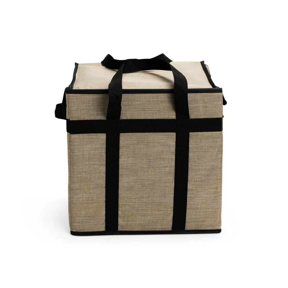 Descrição: Bolsa térmica confeccionada em Oxford impermeável, fechamento em velcro e capacidade máxima de 31 litros. Conta com armação interna em placa de PVC e junção inferior em velcro, que facilita o transporte quando a bolsa não estiver em uso. Possui revestimento térmico interno em folha de alumínio e um par de alças de nylon para transporte.