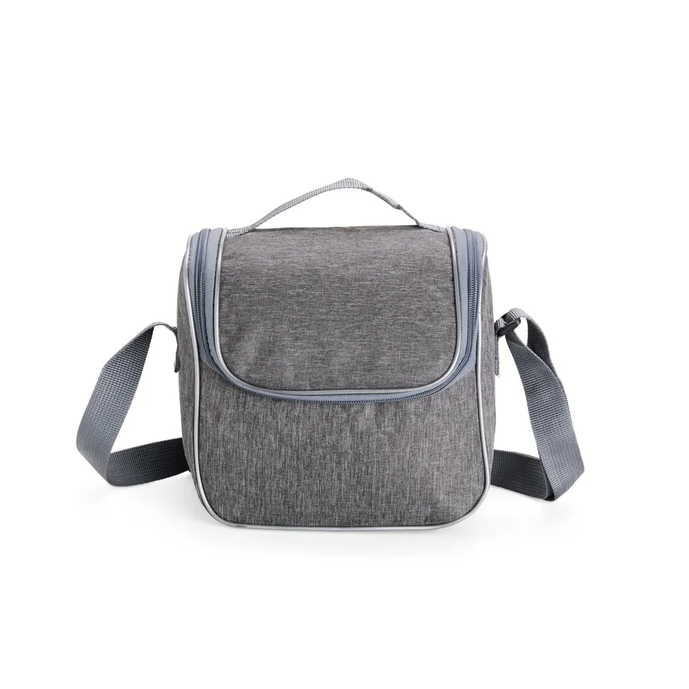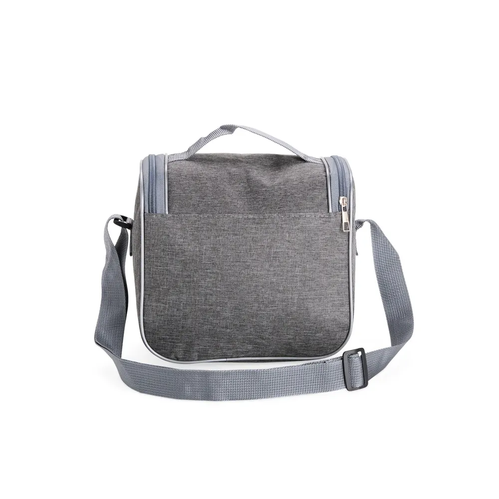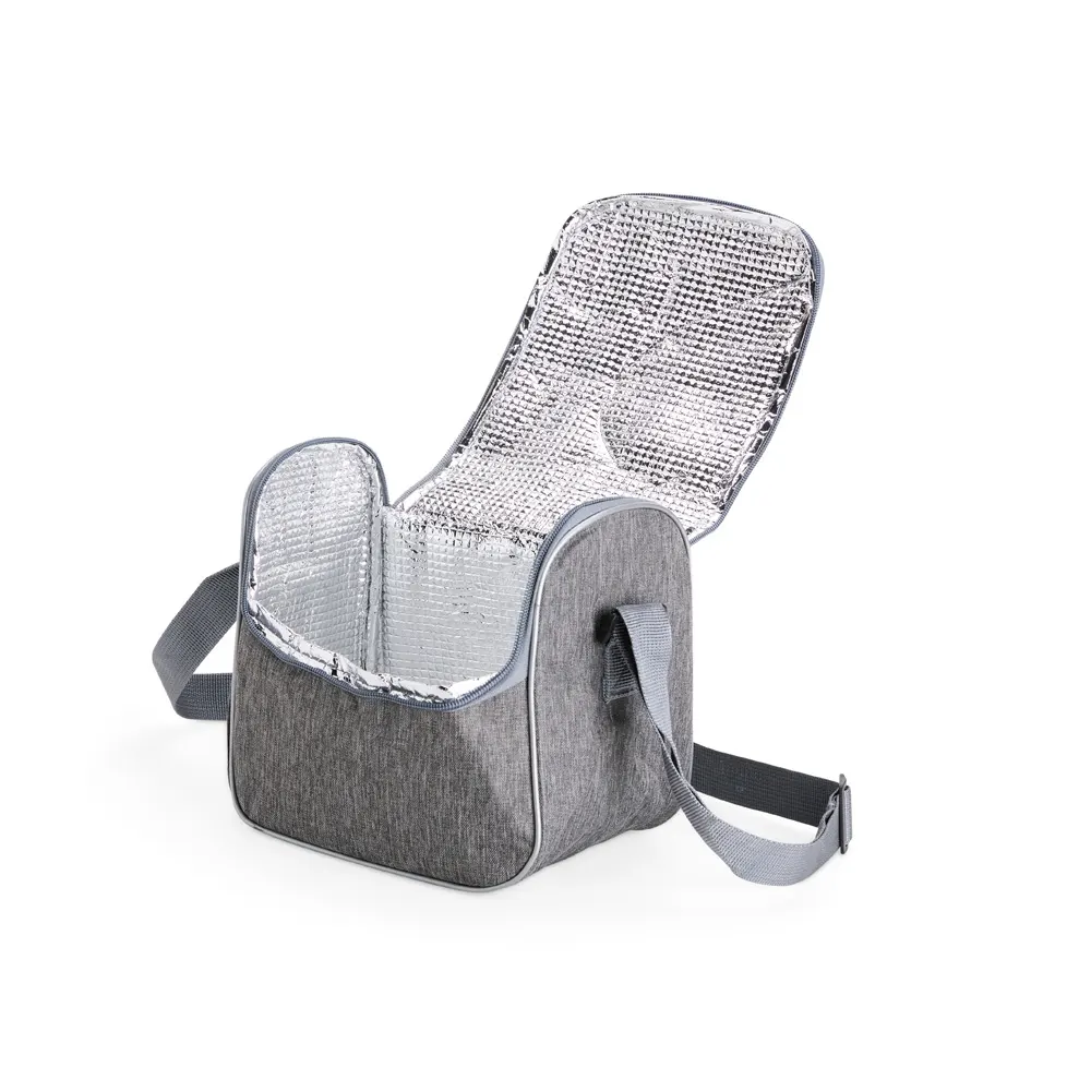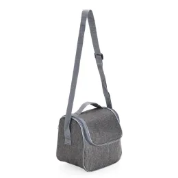 Descrição: Bolsa térmica com capacidade de 5 litros. Feita em Oxford resistente à água, possui abertura frontal em zíper, além de revestimento interno em alumínio EPE, que ajuda a conservar a temperatura de alimentos e bebidas por mais tempo. Conta com uma alça superior e uma alça transversal fixas.