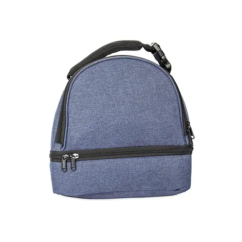 Descrição: Bolsa térmica dupla feita em poliéster 300D resistente à água, com capacidade total de 12 litros divididos em dois compartimentos revestidos internamente em PEVA: o superior comporta até 5 litros e o inferior, até 3 litros. Possui alça superior com engate em plástico