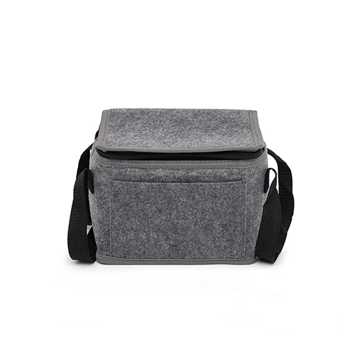 Descrição: Bolsa térmica feita em feltro com capacidade para 5 litros, possui revestimento térmico, bolso frontal e alças para as mãos.