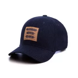 Boné 06 gomos, aba curva, confeccionado em veludo colete. Frontal revestida com entretela inteligente. Estampa frontal em patch aplicado com bordado. Ajustador Snapback.