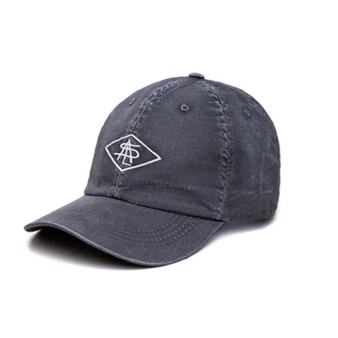 Boné dad hat aba curva, confeccionado em sarja com lavagem marmorizado, frontal em bordado, ajustador em velcro.
