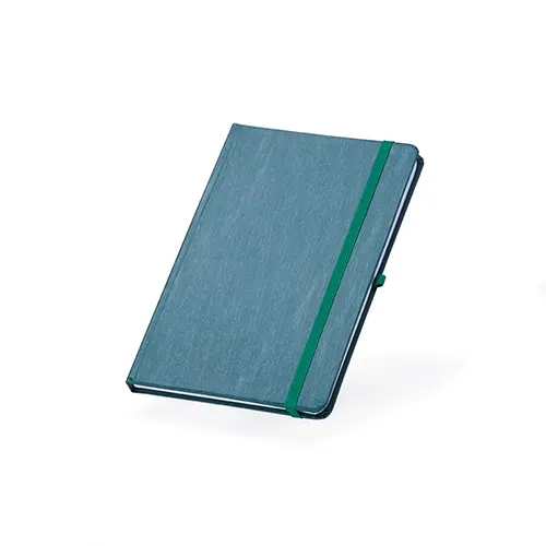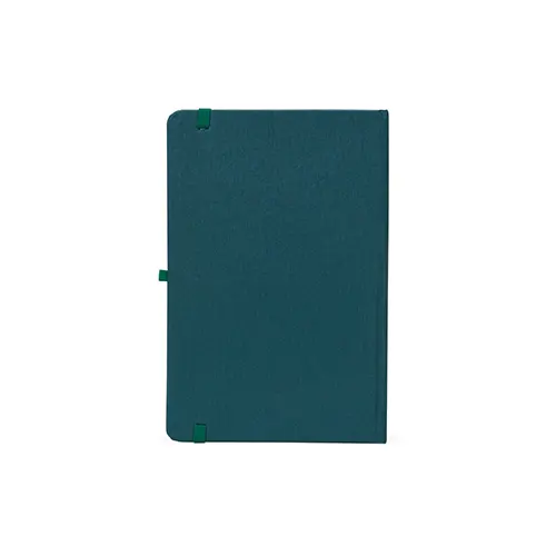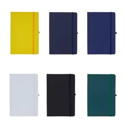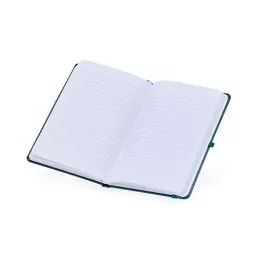 Descrição: Caderneta em percalux escovado com suporte para caneta, elástico para lacre e marcador de página em cetim, contém aproximadamente 80 folhas com pauta na cor branca.