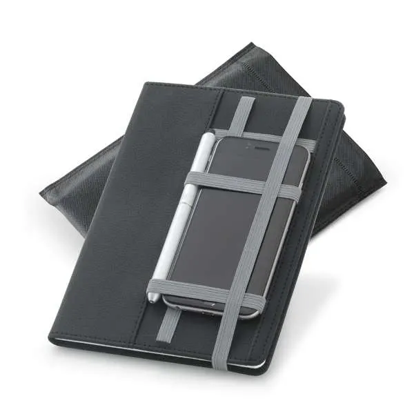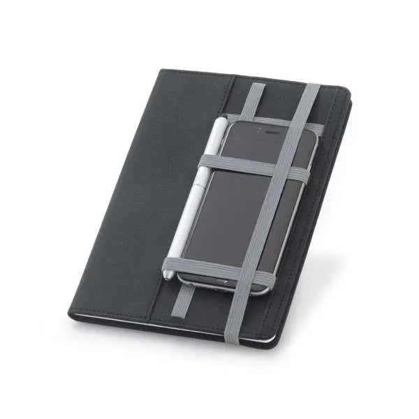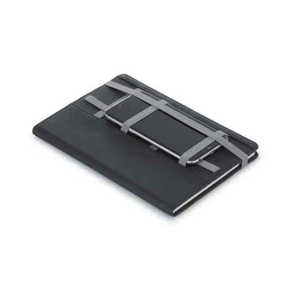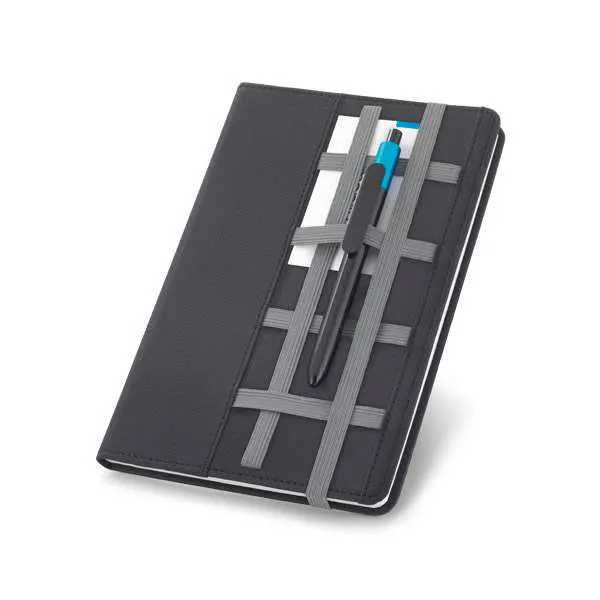 Caderno Capa Dura Couro Sintético. Com 80 folhas não pautadas. Fornecido em embalagem de non-woven. Esferográfica não inclusa. 150 x 210 mm | Embalagem: 175 x 240 mm