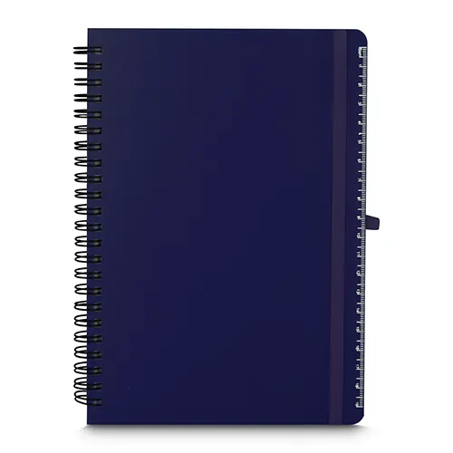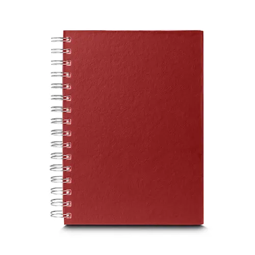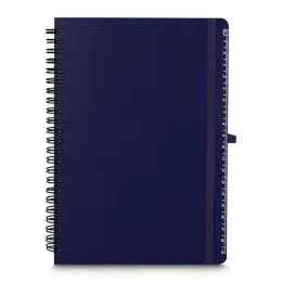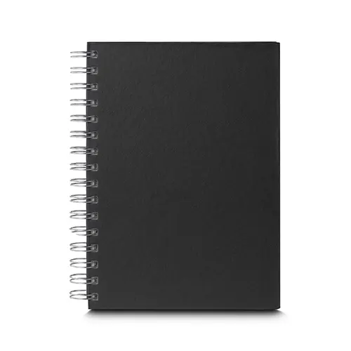 Caderno capa dura em percalux com 100 folhas, sendo elas 7 páginas iniciais com área para dados pessoais, calendário 2024/2025/2026, planejamento anual e trimestral.
