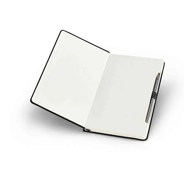 Caderno Couro Sintético Capa dura. Com 96 folhas não pautadas. Incluso esferográfica de metal. Fornecido com caixa de oferta. 139 x 216 mm | Caixa: 145 x 220 x 15 mm