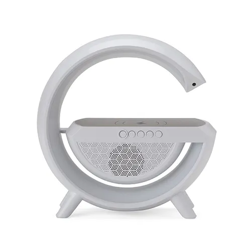 Descrição: Caixa de som com carregador por indução e luminária. Possui 6 modos de iluminação, opera nos modos bluetooth, rádio FM, auxiliar P2, USB e TF (cartão MicroSD). Para desfrutar do carregamento por indução (sem fio) é fundamental que o celular possua a tecnologia QI, o produto só armazena bateria para funcionamento próprio, para funcionar a indução precisa estar conectado a uma fonte de energia.