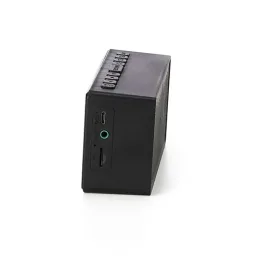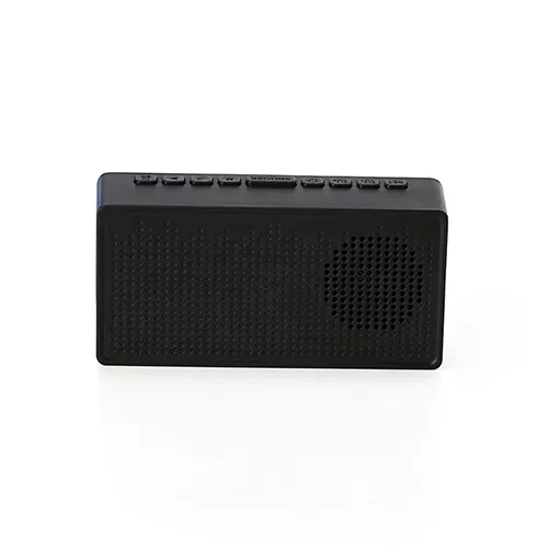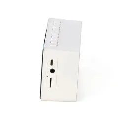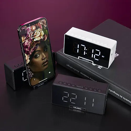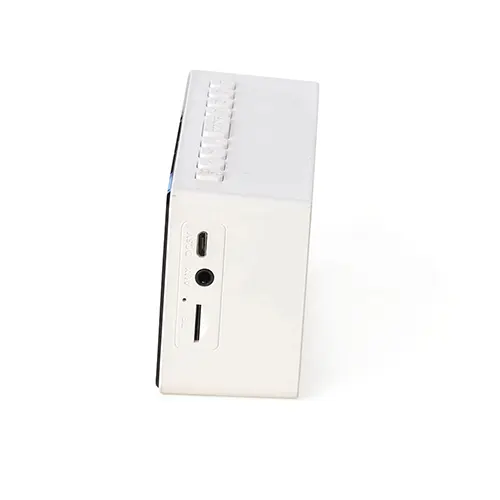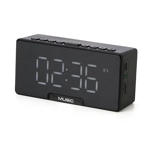 Descrição: Caixa de som multimídia com relógio despertador e suporte para celular. Produzida em plástico e com borrachas antiderrapantes na área inferior, a caixa de som tem a área frontal com display de LED, além de um compartimento com suporte para celular – uma espécie de “gaveta” aonde é exibido (MUSIC), basta puxá-la ter acesso ao compartimento. A caixa de som executa nos modos bluetooth, cartão TF-microSD e entrada auxiliar P2. Acompanha cabo USB e manual em inglês.