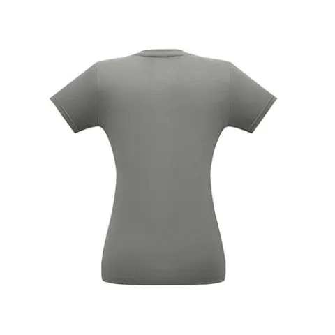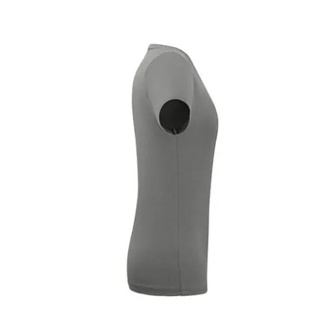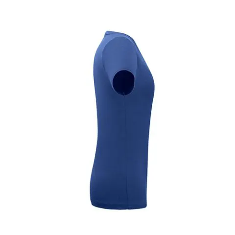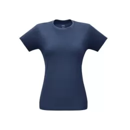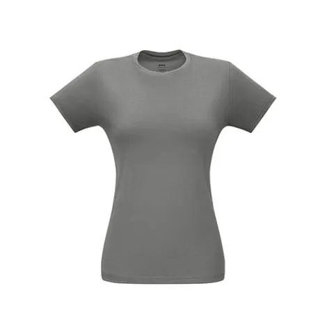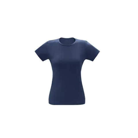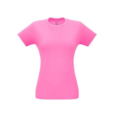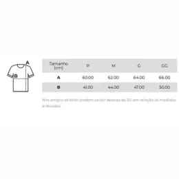 Camiseta feminina de corte cinturado em malha 100% algodão (170 g/m2) com fio 30/1 penteado. Com gola em ribana 1×1 com fita de reforço e com costura dupla nas mangas, barra de fundo e laterais. Tamanhos: P, M, G, GG