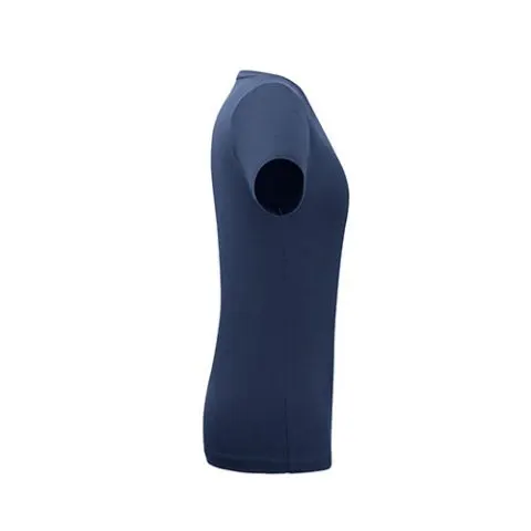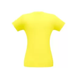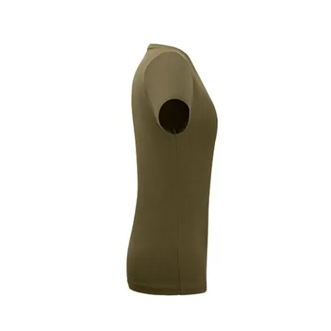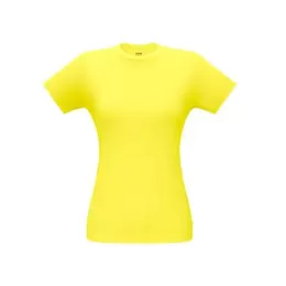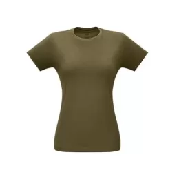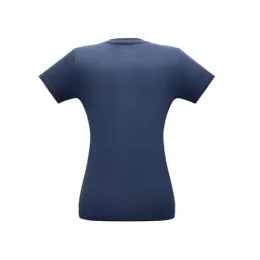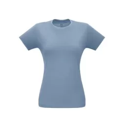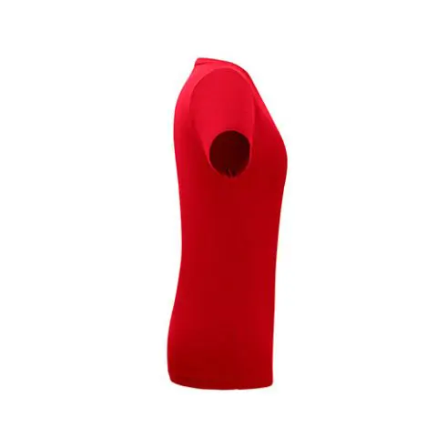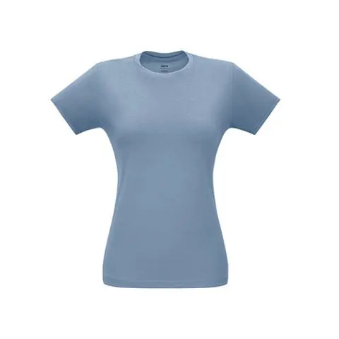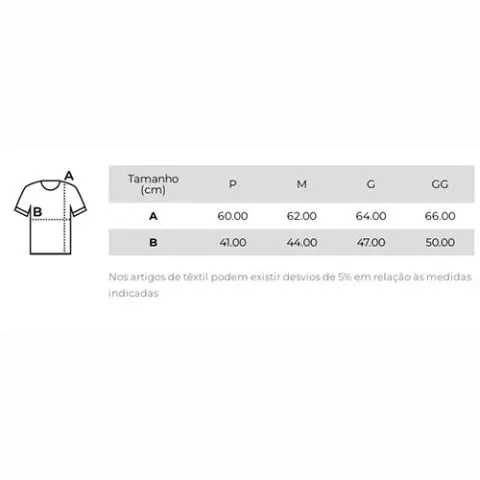 Camiseta feminina de corte cinturado em malha 100% algodão (135 g/m2) com fio 30/1 misto. Com gola em ribana 1×1 com fita de reforço e com costura dupla nas mangas, barra de fundo e laterais. Tamanhos: P, M, G, GG