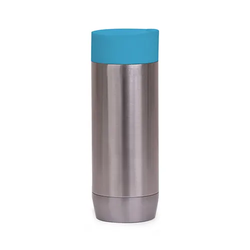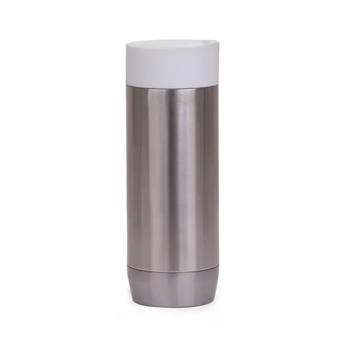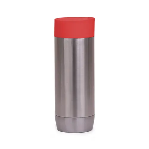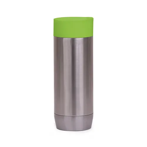 Caneca em aço inox parede dupla, conserva temperatura e tampa com vedação. Capacidade 450ml.