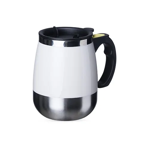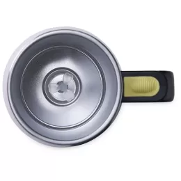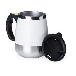 Descrição: Caneca de inox com misturador de bebida, feita em parede dupla com capacidade de 350ml. Contém tampa plástica com bocal e trava de segurança. Para o funcionamento, utiliza-se duas pilhas AAA (não acompanha).