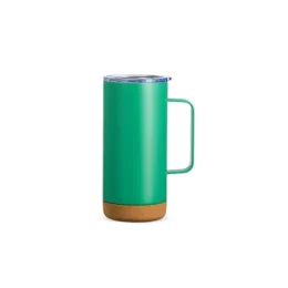 Descrição: Caneca Térmica de 500ml feita em inox com fundo de cortiça, tampa com bocal e trava de segurança. Um item que alia a elegância da cortiça com o inox.