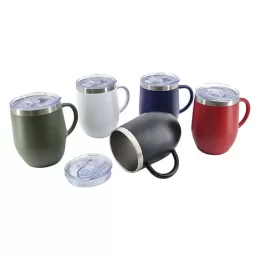 Descrição: Caneca térmica de inox com capacidade de 350ml, material livre de BPA. Contém tampa acrílica com bocal e trava de segurança.