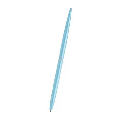 Descrição: Caneta metálica com acionamento por rotação e carga esferográfica azul 1mm.