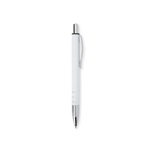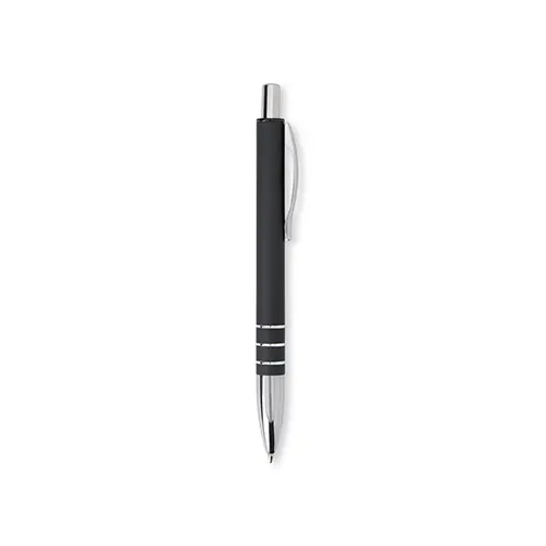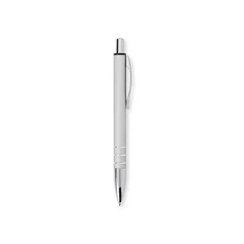 Descrição: Caneta metálica com acabamento fosco, clipe metálico e ponteira plástica. Carga esferográfica azul 1.0mm e acionamento por clique.