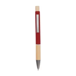 Descrição: Caneta com carga esferográfica azul de 1.0mm. Apresenta corpo metálico, detalhes em bambu e acionamento por clique, oferecendo uma pegada leve para uma escrita precisa.