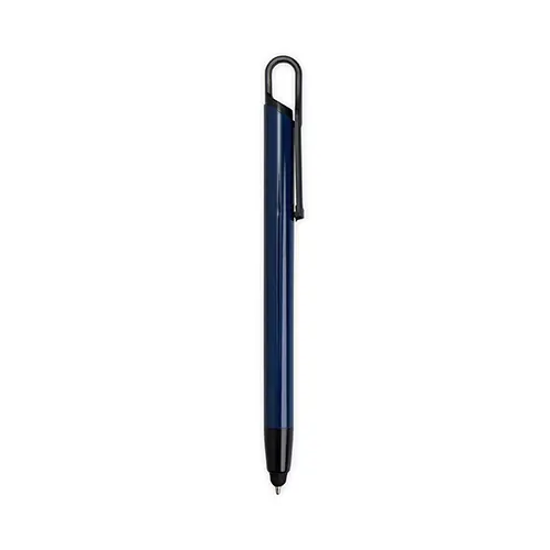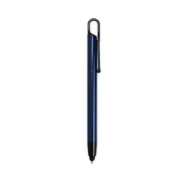 Descrição: Caneta metálica com clipe plástico e ponteira touch, carga esferográfica azul 1.0mm e acionamento por clique.