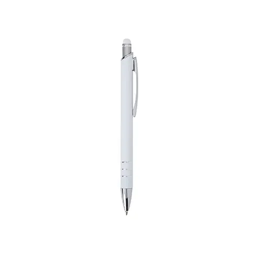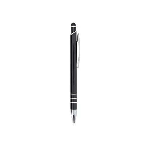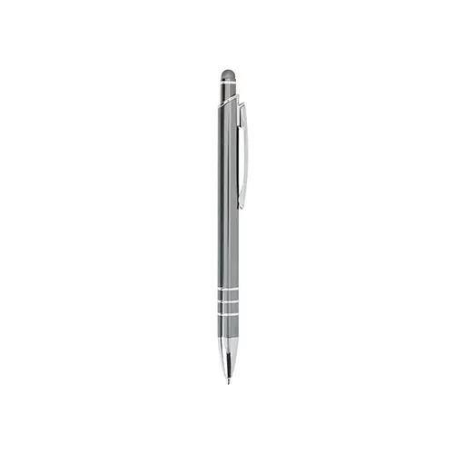 Descrição: Caneta metálica com acionador touch, clipe metálico e ponteira plástica. Carga esferográfica azul 1.0mm e acionamento por clique.