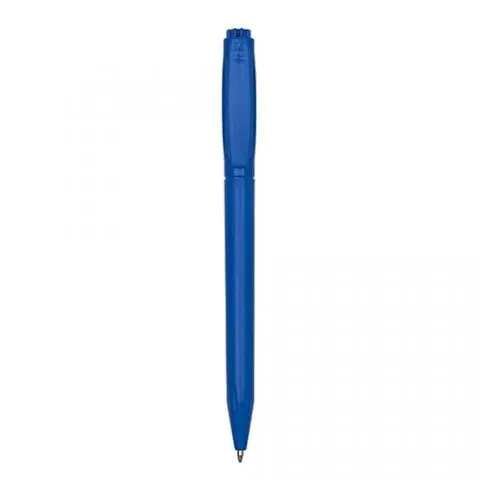 Descrição: Caneta plástica fosca inteira colorida. Possui detalhes em relevo na parte superior ao redor do clip, parte inferior com detalhes em relevo. Aciona por clique e para destravar basta apertar a parte inferior do clip. Possui carga esferográfica azul.