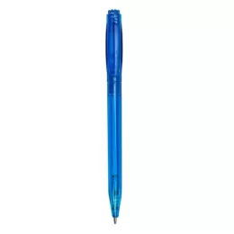 Descrição: Caneta plástica inteira colorido. Possui detalhes em relevo na parte superior ao redor do clip, parte inferior com detalhes em relevo. Aciona por clique e para destravar basta apertar a parte inferior do clip.