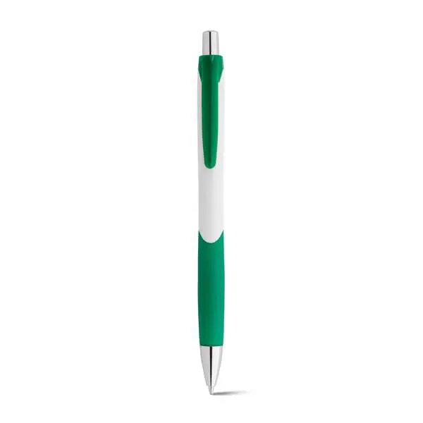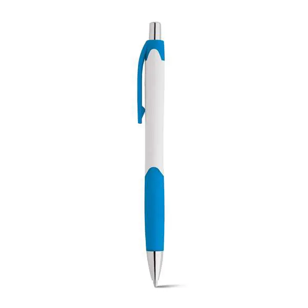 Esferográfica em ABS com grip. Acabamento brilhante. Ponteira cromada.