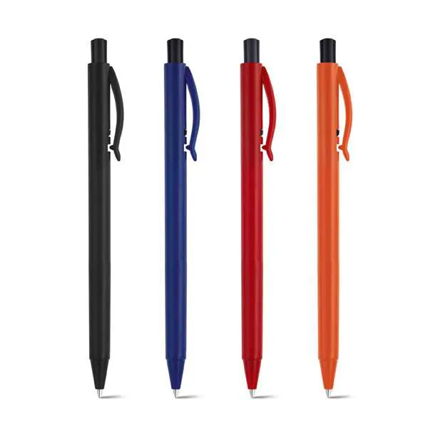 Esferográfica. ABS. Com grip. Acabamento brilhante. Corpo triangular. ø9 x 141 mm