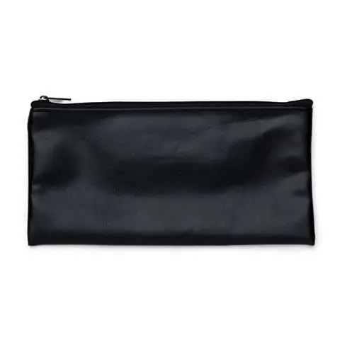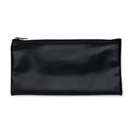 Descrição: Carteira couro sintético com calculadora solar de 8 dígitos. Carteira preta com detalhes prata na calculadora e botões impressos na capa em branco, possui zíper.