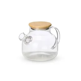 Descrição: Uma chaleira em estilo clássico e refinado, com capacidade máxima de 1 litro, para deixar a hora do chá mais agradável. Feita em vidro borossilicato, material conhecido por sua resistência e durabilidade, esta chaleira pode ser levada a fogo baixo, suporta variações de temperatura sem danificar, é fácil de limpar e não absorve odores, sabores ou manchas, mantendo a integridade do gosto e aroma de cada infusão. Ela possui tampa em bambu com vedação em silicone para conservar a temperatura quente dos líquidos por mais tempo. Acompanha filtro para bico em alumínio.