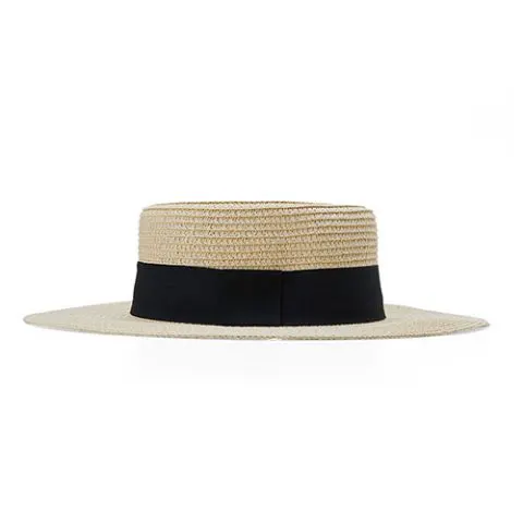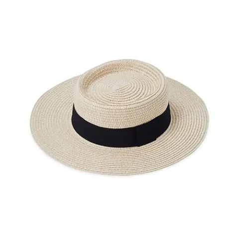 Descrição: Chapéu de palha com aba levemente ondulada e faixa de poliéster fixa, feito em tamanho único com ajuste interno.