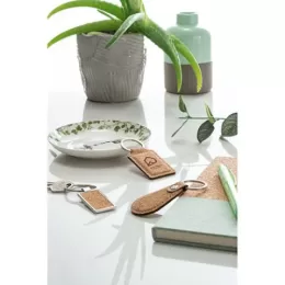 Chaveiro em cortiça. Fornecido com caixa de cartão kraft desmontada. 35 x 55 x 3 mm
