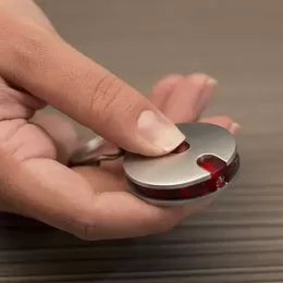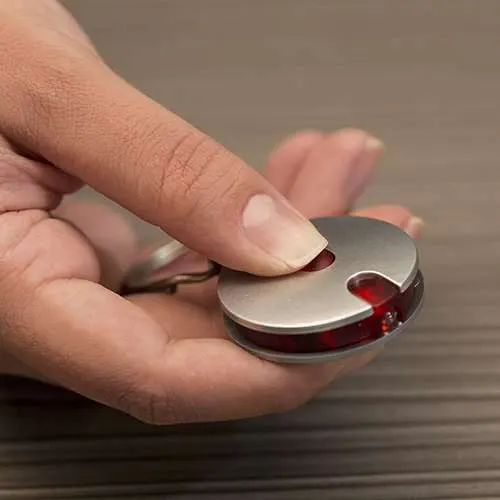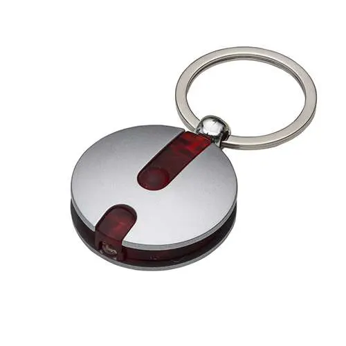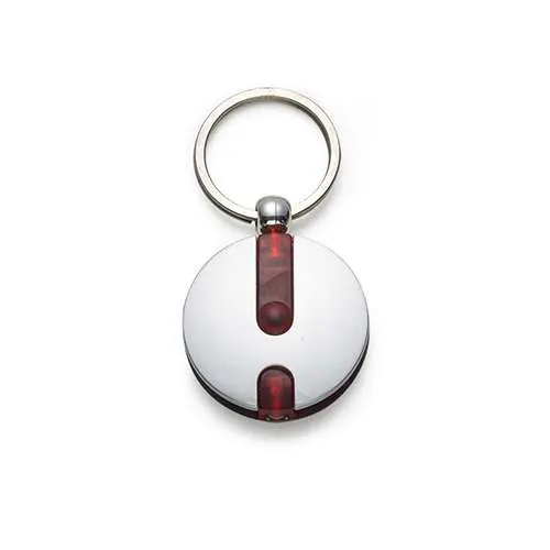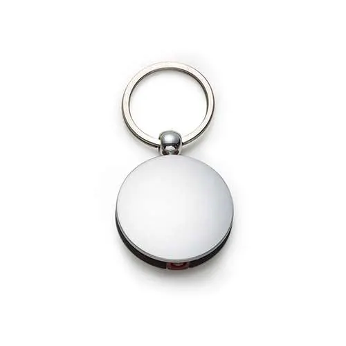 Chaveiro lanterna plástico, inteiro prata com detalhes coloridos. Formato redondo, possui verso liso e frente com botão para acender a lanterna. Acompanha 3 baterias AG3, para trocar bastar puxar com cuidado “tampa” inferior de encaixe.