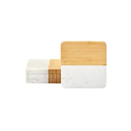 Conjunto de 4 Porta Copos em Mármore e Bambu SP94338