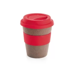 Copo de viagem. Fibra de bambu e PP. Com tampa e banda em silicone. Capacidade: 390 ml. Food grade. Ø95 x 113 mm