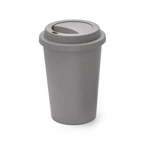 Copo de viagem com tampa e corpo em PP. Capacidade até 450 mL. Ø90 x 135 mm
