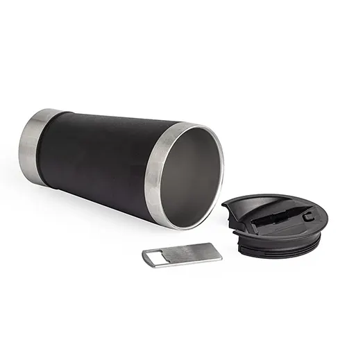 Descrição: Copo térmico inox 500ml com tampa e abridor, acabamento levemente texturizado. Tampa livre de BPA.