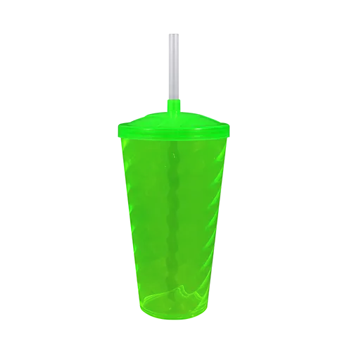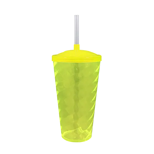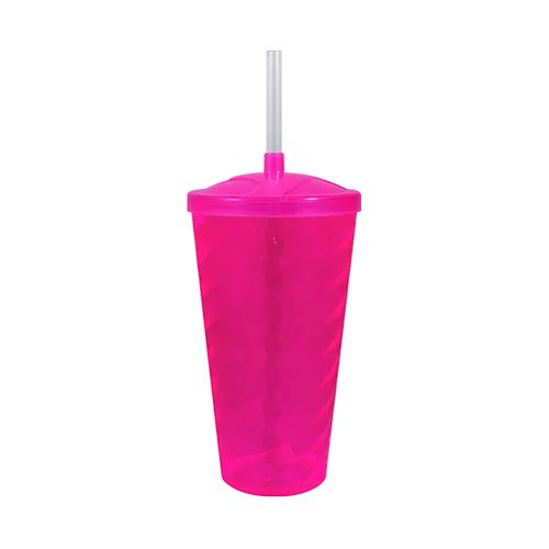 Capacidade para 600ml. Design moderno e acabamento impecável, o Copo Twist com Tampa e Canudo é feito em Plástico Premium (PS), atóxico, com parede de 2mm de espessura que garante um produto robusto de alta qualidade, transparência impecável e cores vibrantes.