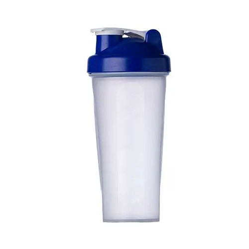 Coqueteleira Shake 600ml plástica. Possui medidas em ml e oz, detalhes em relevo nas laterais e mola para misturar. Tampa de rosca e trava na própria tampa, basta levantar para beber.